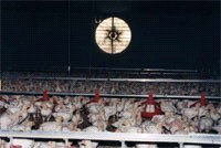 現(xiàn)代化雞舍能夠通過靜態(tài)壓管理控制通風(fēng)入口,管道通風(fēng)和蒸發(fā)冷卻通風(fēng)都非常有效。但是,生產(chǎn)者必須合理管理和維護通風(fēng)設(shè)備。否則,體重和飼料轉(zhuǎn)化率會削弱,給飼養(yǎng)者和綜合商帶來重大的經(jīng)濟損失。